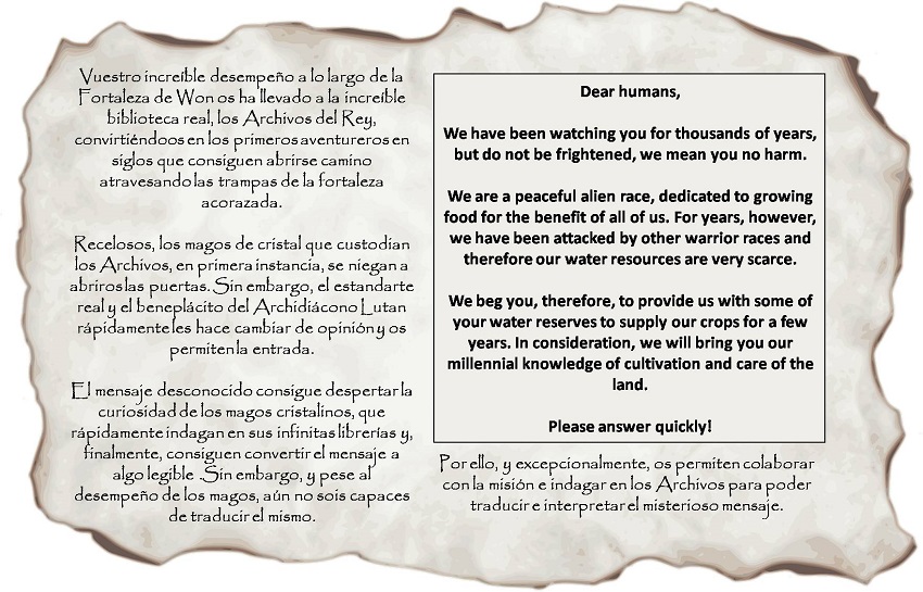 Esta breve historia constituye la aventura que el alumnado recorrerá a la par de su aprendizaje del inglés. Así, estas dos primeras sesiones extraordinarias se postulan como clases preparatorias que enlazan con el trabajo realizado en la fase inicial, en las que se familiarizará al alumnado con los conceptos que le acompañarán durante el resto del trimestre: puntos de experiencia, niveles, habilidades, puntos de vida, maná/energía, etcétera.