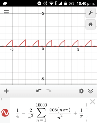 1) Teclear la ecuación en Desmos, 2) pedir en la interfaz gráfica y 3) determinar la función f (t) que corresponde a la serie de Fourier dada.