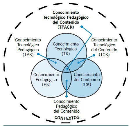 Mishra y Koehler (2006) desarrollaron un modelo enfocado a la tecnología educativa que estudia las intersecciones entre conocimiento tecnológico (TK), conocimiento del contenido (CK) y conocimiento pedagógico (PK), al que denominaron TPACK. Según Tárraga Mínguez, Sanz Cervera, Pastor Cerezuela y Fernández Andrés (2017), este modelo permite incorporar, de una manera conjunta, los aspectos relacionados con las tecnologías de la información y la comunicación (TIC), el contenido curricular y el conocimiento pedagógico.