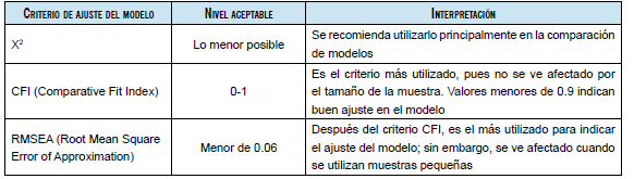 El análisis factorial confirmatorio (AFC) permite corroborar o corregir los errores del AFE, mediante la matriz de covarianzas; además, realiza una mejor contrastación de las hipótesis (Bollen, 1989). En el AFC se pueden establecer las correlaciones entre las variables observadas y los factores a través de las cargas factoriales. La correlación será mayor entre más se acerque este valor a uno, el valor recomendable es mayor de 0.07 (Garson, 2013).