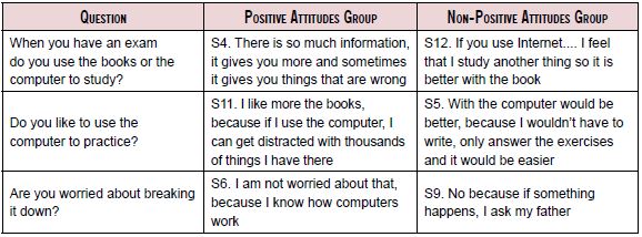 Table 7 presents children's opinions towards learning English using technology. For the interviewers, English Language learning is associated to the use of printed books rather than to ICT. While one could expect their preference for the use of printed materials is related to the possibility of damaging the computer equipment, their reasons tightly connect with the guidance they receive from teachers as they use their textbooks, and to their preoccupation of becoming distracted during task completion by the features of the applications.