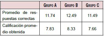 Respecto a los resultados obtenidos en el examen rápido, el grupo que alcanzó el mayor promedio fue el B, con una calificación de 8.33; el de menor promedio fue el C, con un valor de 7.66 (ver tabla 6). Entre los proyectos de RA del grupo B, se identificaron elementos de importancia visual y digital, por ejemplo, el uso de su propia voz, la edición de entradas y salidas, así como las referencias empleadas para la elaboración del proyecto.2