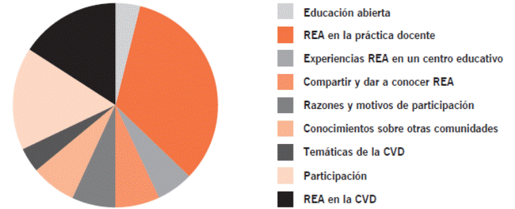 En síntesis, la presencia de los REA dentro de las CVD se ha consolidado y permite que existan procesos formativos abiertos y flexibles entre los colectivos docentes, lo que establece relaciones de colaboración y acerca al aula estos recursos de libre acceso.