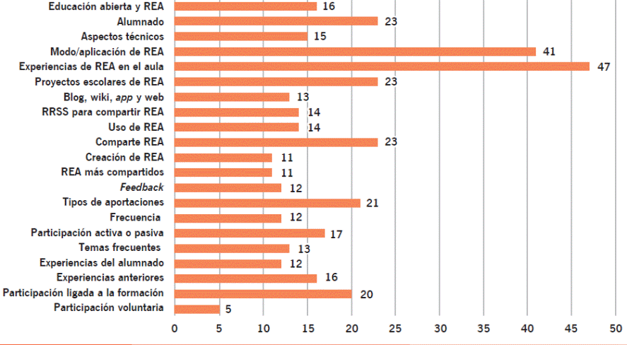 Como se deduce de los resultados, es posible hablar de una dificultad del profesorado para definir el concepto de REA, lo que genera una polisemia de términos. Los tipos de REA que más se comparten son: videos, aplicaciones interactivas, presentaciones en línea, infografías, ejemplos de unidades didácticas y sesiones de aula. Estos recursos son llevados al aula en sus prácticas docentes, lo que se ha vuelto una situación cotidiana.