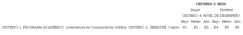 El contexto de estudio es la Universidad José Vasconcelos, institución de carácter privado, ubicada en la capital del estado de Oaxaca, México. Debido a que el objetivo fue identificar los cambios cuantitativos y cualitativos en el proceso de aprendizaje de la competencia informativa, la selección de la muestra fue intencional y por conveniencia (Creswell, 2010): participaron seis estudiantes del mismo programa académico y período formativo, pero con diferente nivel de desempeño en la competencia informativa. Se consideró el cuarto semestre debido a que en este los estudiantes están familiarizados con las prácticas de gestión de la información en la universidad. Por su parte, se identificaron los niveles de desempeño a partir de entrevistas aplicadas a docentes. La tabla 2 muestra la síntesis de los criterios de selección.