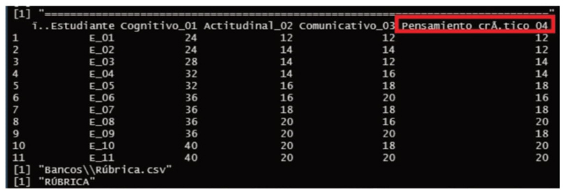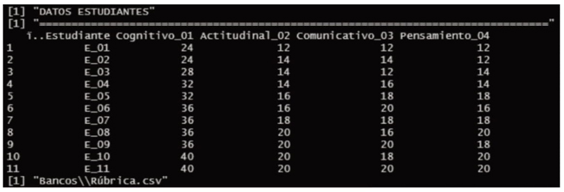 Una vez elaborado el sistema se realizó la carga de los datos codificados, esto con la finalidad de comenzar a alimentarlo y a detectar errores. Primero se ingresaron los datos de los estudiantes (ver figura 4), seguido de la rúbrica y de los recursos educativos. Uno de los errores que se detectó al estar cargando los datos al sistema fue que no identificó de manera correcta las palabras que tenían acento (ver figura 5). Una vez con el SR en funcionamiento, pudimos certificar que las pruebas piloto logran recomendar recursos educativos de acuerdo con la calificación obtenida de la rúbrica de la Actividad integradora 1 (ver figura 6).
