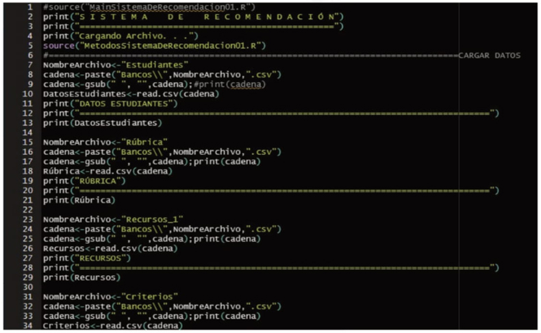 Integrado el equipo se comenzó con el diseño del prototipo del SR. En una primera etapa se hizo una investigación documental con la finalidad de comprender más a detalle la manera en la que los SR podrían ayudar a recomendar recursos de fuentes confiables a los alumnos. Posteriormente, se desarrolló el SR utilizando el lenguaje de programación R, que tiene un entorno de software libre, es fácilmente escalable y cuenta con una variedad de métodos y técnicas que son utilizados para la investigación científica en proyectos que implican la manipulación y análisis de grandes volúmenes de datos. El conocimiento y la mirada de expertos de varias áreas temáticas contribuyó a reflexionar sobre el prototipo realizado y también permitió tener un análisis riguroso de su aplicación.