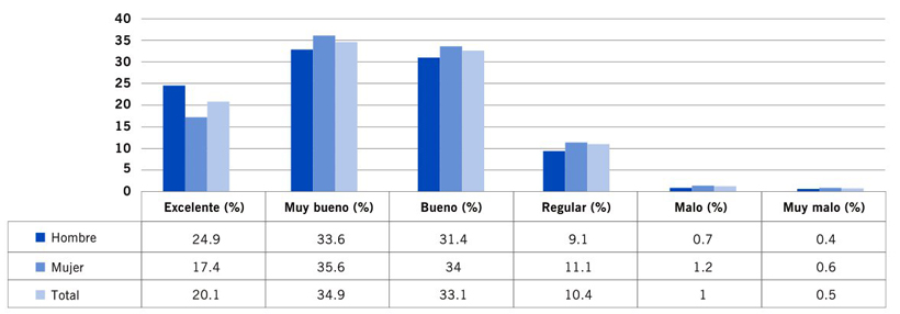 En la gráfica 1 se muestra la distribución porcentual por género para la pregunta sobre la autopercepción en el manejo y uso de las plataformas virtuales. La mayoría (68%) considera que su habilidad es buena o muy buena, y uno de cada cinco estudiantes la califica como excelente. Se detectó una asociación entre la habilidad en el uso de las plataformas virtuales y género (χ2 (5) = 13.576; p = 0.019). La prueba de Bonferroni identificó diferencias significativas únicamente en la categoría “excelente”, donde los hombres superan a las mujeres en esta clasificación (24.9% frente a 17.4%).