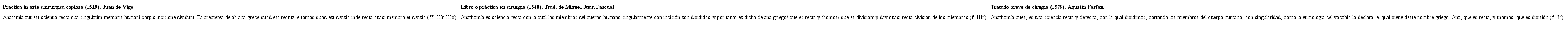 Desde tiempos muy remotos, la difusión del arte de la medicina se ha fundamentado en la traducción.17 Sin pretender remontarme a la importante labor traductora de la medicina árabe a inicios del siglo IX, con figuras como Mesué,18 me gustaría recordar que ya en la Baja Edad Media castellana el concepto “enterpretador”19 estaba asociado al arte de la medicina. Así se comprueba en la traducción del Breviarium ab urbe condita de Eutropio (1377-1399), en el que se declara: “Enta Pergamo de Asia aquesti fue mucho claro enterpretador de Ypocras et clarecio encara en Athenas et en Alexandria, en los quales lugares mucho prouecho en philosophia et en medecina. Et estan i muchos liuros medicinales”.20 Es decir, para prolongar lo señalado en torno a la llamada Herencia medieval de México,21 aquí Farfán dilata en su quehacer como médico novohispano una acción cuya conceptualización no sólo se restringía a la mera traducción, sino cuya heurística comprendía también otras acciones propias de la creación de la literatura médica de la temprana modernidad, como la selección, el comentario, la exposición y explicación de lo que, a juicio del autor, era lo que se debía sacar de un autor “moderno” que le ha precedido en sus intenciones de escribir, en este caso, sobre lo que es la anatomía, para así proceder con la intervención del cuerpo mediante la cirugía.