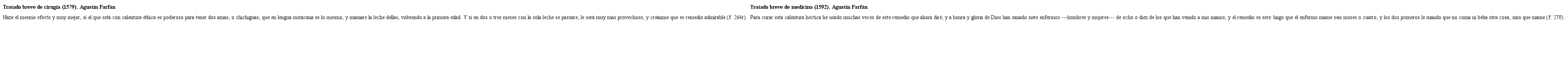 Farfán, Agustín. Tratado breve de cirugía y del conocimiento y cura de algunas enfermedades que en esta tierra más comúnmente suelen haber. México: Antonio Ricardo, 1579.