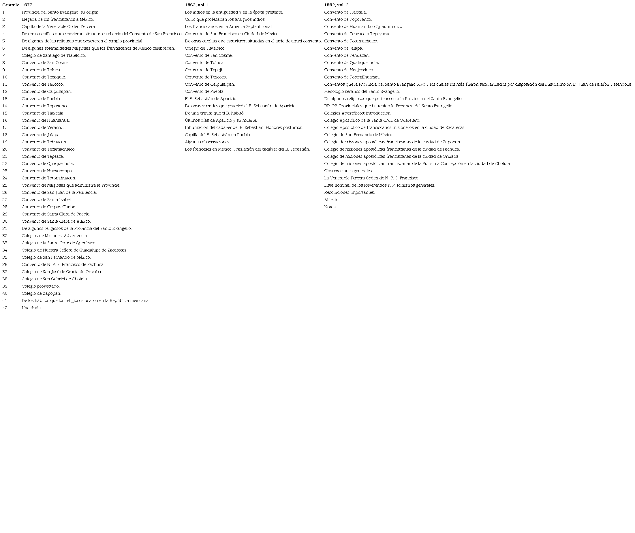 Al analizar ambos índices, podemos observar una cantidad considerable de cambios, modificaciones y diferencias en el capitulado. Esto posiblemente se debe a los distintos intereses que tuvo el autor en las dos etapas de elaboración. Ante la necesidad de dar a conocer esta crónica, un equipo de la Diócesis de Texcoco ha transcrito toda la obra para ponerla a disposición de los académicos y el público en general. Como veremos más adelante, en la transcripción del texto, la información presentada es rica porque su narrador, fray Luis Malo, fue espectador y testigo presencial de los hechos.