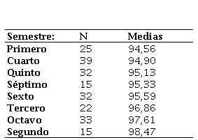 Por último, en el factor 5 (Motivación intrínseca de conocimiento), son los estudiantes de primero a cuarto semestre quienes presentaron mejor puntuación (4). Estos resultados son apoyados por los resultados obtenidos en la investigación de Rovella, et al. (2008); Rovella, Pitoni, Delfino, Díaz y Solares (2011); Sarmiento y Tabares (2016). Cabe señalar, que, si bien es cierto, en los cuatro primeros factores se presentan diferencias en términos de media, estas no son estadísticamente significativas.