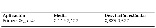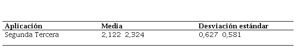 Al inicio de la sexta sesión de la secuencia didáctica, con las actividades ya realizadas, los estudiantes contestaron por segunda vez la Escala de percepciones sobre la fluidez oral del inglés con el objetivo de analizar el efecto de las seis primeras sesiones en los estudiantes. Para esto se compararon las medias y desviaciones estándar de la primera y segunda aplicación de dicha escala, aplicada en las sesiones uno y seis respectivamente. La media global del instrumento se mantuvo en la opción A veces, siendo esta la respuesta más frecuente, con una mínima variación de tres centésimas. La desviación estándar también disminuyó mínimamente como se evidencia en la tabla 3.