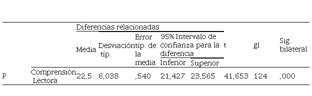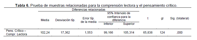 Tabla 6.Prueba de muestras relacionadas para la comprensión lectora y el pensamiento crítico.