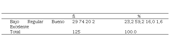 El 1,6% tiene una excelente comprensión lectora, el 16% de estudiantes presenta buena comprensión, mientras que el 59,2 % es de regular resultado y, por último, el 23,2 es de bajo nivel (Tabla 2). Se concluye que los estudiantes tienen un nivel de comprensión lectora aceptable en un buen porcentaje (76,8%). Cabe resaltar también que, en el aspecto cuantitativo, la nota más alta fue 13, con un 26.4% de los estudiantes, seguida de 12 (20.8%) y 14 (12%).