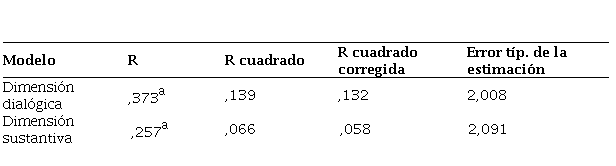 Los resultados de R2 para cada dimensión indican que la comprensión lectora contribuye en 13.9% a explicar el comportamiento de la dimensión sustantiva del pensamiento crítico; es decir, la comprensión lectora no determina el pensamiento crítico sustantivo o, en todo caso, su contribución es baja (Tabla 5)