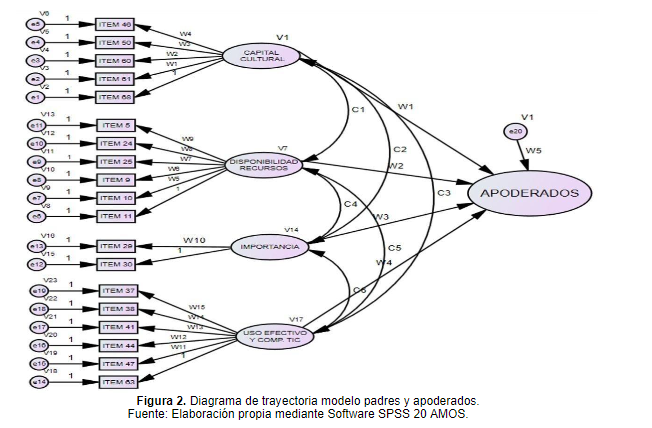 Figura 2. Diagrama de trayectoria modelo padres y apoderados.