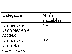 Tabla 2. Número total de variables en el modelo.