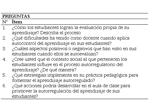 Los docentes participantes expresan que la práctica educativa es uno de los aspectos que debe incidir favorablemente en los procesos de autorregulación del aprendizaje estudiantil. El factor determinante en ello es la motivación en el alcance de las metas escolares y personales. Por esa razón, el docente debe propiciar estrategias que permitan al estudiante hacer seguimiento de su propio desempeño y la autoevaluación continuar en el mejoramiento personal. No obstante, algunos de los profesores observan que aspectos como el contexto social y los instrumentos aplicados en educación dificultan los procesos de autorregulación. En relación con los factores contextuales se destacan el poco acompañamiento de los padres de familia, sus dificultades económicas, las carencias de recursos educativos, los modelos que presentan los programas de televisión, la presión de los pares y las pandillas como medio alternativo para superar las dificultades de exclusión y pobreza; por su parte, los factores escolares se refieren a las pruebas estandarizadas, las prácticas tradicionalistas, la nula creatividad, la desmotivación por el trabajo y el autoritarismo escolar.