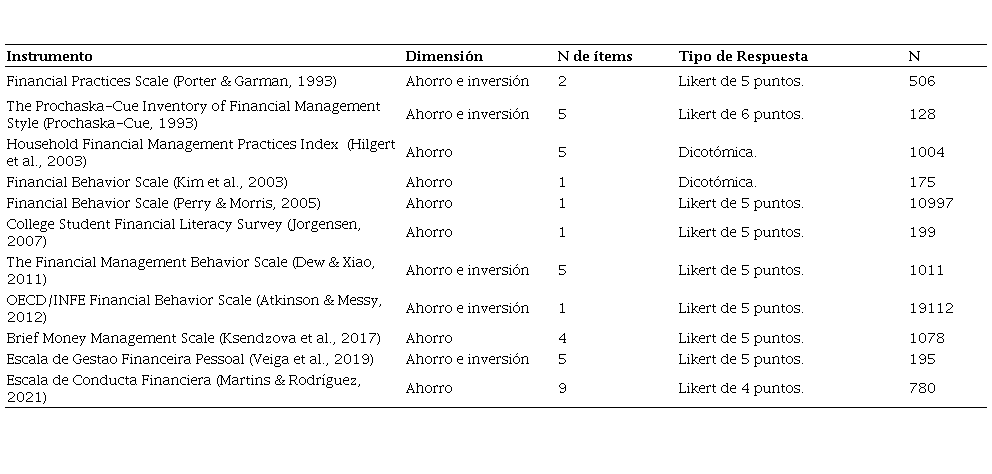 Tabla 1.Instrumentos que incluyen ítems referidos a conductas de ahorro.