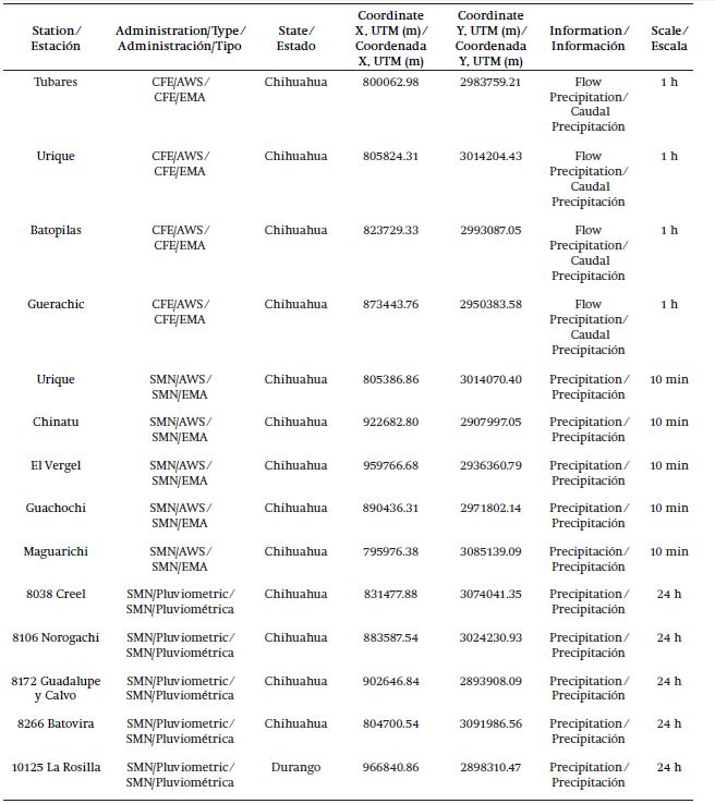 Information from automatic weather stations (AWS) was provided by the Comisión Federal de Electricidad (CFE, 2019) and the SMN (2019b). The months reported were from June to October 2009, 2011, 2015, 2016 and 2017. Twenty-four h rainfall information was also requested from the SMN (Table 1). Figure 1 shows the location and spatial distribution of meteorological and hydrometric stations.