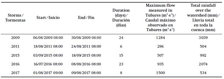 Methodology: Five extreme rainfall events were considered for this study. The hydrologic model was design using the HEC-HMS program, and calibrated at the Tubares hydrometric station. The runoff curve number methodology and the Clark unit hydrograph were used.