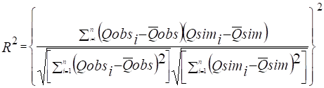 It expresses the strength of association between two variables. R2 = 1 indicates a perfect positive relationship between two variables, but is not an automatic guarantor of good simulation as it is insensitive to additive and proportional differences between observed and predicted time.