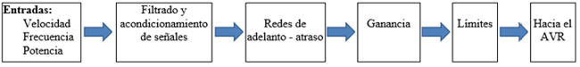 Sánchez et al. (2012) afirma que para que el PSS pueda producir esta señal, debe medir la desviación de velocidad, además de compensar los retardos existentes en el sistema de excitación y el campo del generador, con ajustes apropiados de las constantes de tiempo de dos o más filtros adelanto - atraso. En la Figura 3, se observa un diagrama general de la estructura de un PSS.