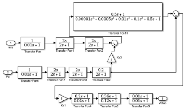 La Figura 8 muestra el PSS2B implementado en Simulik y la Tabla 1se muestran los valores estándares que se tomaron como ajustes en correspondencia con lo planteado por Martínez et al. (2015) y brindados por Jumbo (2012), Duarte-Mermoud & Milla (2018), Verdejo et al. (2015) y Delgado et al. (2017).