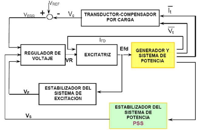 En estudios de interconexiones realizados han ocurrido inestabilidades en el sistema, observándose oscilaciones de baja frecuencia en el rango entre 0,1 a 3 Hz, las cuales restringen la capacidad de transmisión de potencia entre las máquinas generadoras y las cargas, es por esta razón que se diseñan los PSS, el cual es un elemento de control adicional sistema de excitación del generador, como se muestra en la Figura 2, que permite amortiguar las oscilaciones y estabilizar los SEP. Por lo que, como afirman y Martínez et al. (2015) es necesario para amortiguar estas oscilaciones un buen ajuste del PSS.