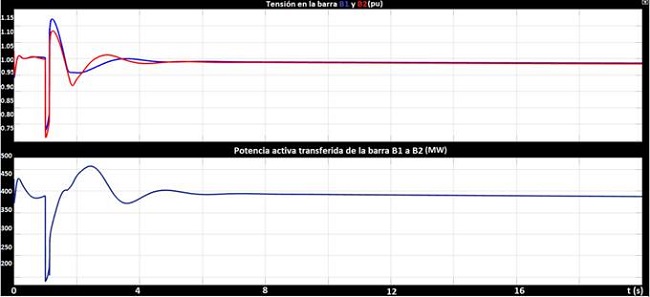 Ante una perturbación el SEP responde principalmente con variaciones en los ángulos de las máquinas generadoras, en los módulos de los voltajes de los nodos generadores y/o más cargados y oscilaciones en los flujos de potencia. Si la variación angular entre los generadores se mantiene entre los límites permisibles para el SEP, este mantiene el sincronismo, de lo contrario pierde el sincronismo, en la literatura consultada se plantea que este fenómeno se pone de manifiesto transcurridos 2 o 3 segundos desde la perturbación.