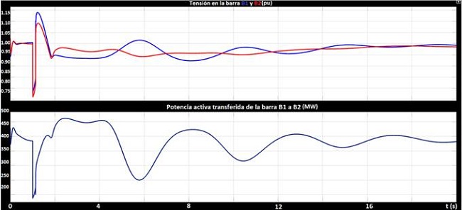 Como se puede observar en la Figura 9, el comportamiento del PSS2B con los ajustes realizados el sistema es estable, sobresaliendo ante el ΔPa-PSS que demora más en alcanzar un estado estable, más de 20 s, con gran oscilación de la potencia transferida.