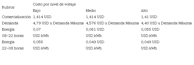 3.2 Tarifas eléctricas para el sector camaronero del Ecuador