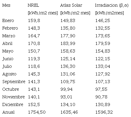 La irradiación anual efectiva incidente sobre la superficie del generador se calcula mediante la Ec. (2) (Lorenzo, 2002)