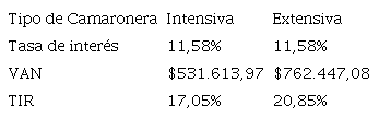 En la Tabla 7, se muestran los resultados del análisis económico financiero de la instalación solar. El análisis se ha realizado para un periodo de 25 años, en función de la vida técnica para proyectos solares fotovoltaicos (Cisterna et al., 2020). Los resultados más satisfactorios se presentan en el caso de la camaronera extensiva ya que el VAN es mayor, en comparación con el VAN de la camaronera intensiva. Asimismo, en los dos casos evaluados, los proyectos son factibles económicamente puesto que el TIR es mayor a la tasa de interés.