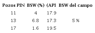 Es importante caracterizar los fluidos que se van a analizar, razón por la cual se obtuvo el % BSW y el (API del petróleo de los pozos PIN 11,13 y 17. También, la salinidad y los sólidos disueltos en el agua de inyección. Los resultados obtenidos se encuentran en la Tabla 5..