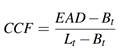 Siendo Bt el saldo empleado, Lt el límite de la línea de crédito y suponiendo que, en el tiempo t antes del default (td ), una operación de crédito puede caer al incumplimiento en el periodo td> t con un saldo Btd = EAD.