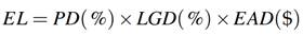 Con estos tres factores, la pérdida esperada en montos monetarios se puede escribir como: