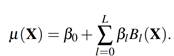 En este modelo (, ), Y = µ (X) + ε donde X es la matriz de covariables y ε es el término de error con media cero. La función de regresión µ (X) es la suma ponderada de L funciones base: