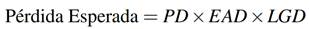 donde la probabilidad de incumplimiento (PD), la severidad (LGD) y la exposición del activo (EAD) juegan un papel fundamental.