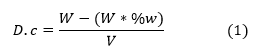 n: Porcentaje de área sólida del espécimen expresada en decimales.