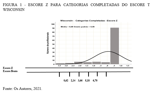 Quando as pontuações das categorias completadas foram padronizadas para o Escore Z, utilizamos como base de cálculo os parâmetros do escore bruto população normal, média de 5,18 e desvio padrão 1,52 (HEATON et al., 2005).
