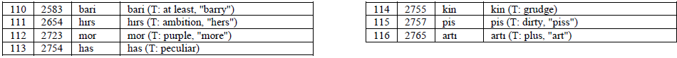 Combined Turkish-English Loanword Cognates Word List (TELCWL)