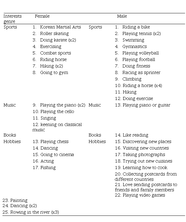 In the category of leisure time activities, male characters are presented to do more activities than male characters. In terms of sports, hobbies, music and books, female and male characters are depicted to do activities that are both non-traditional and traditional. Some of the activities which are generally assigned to either females or males are performed jointly. This shows that there is a change in the representations of females and males in a positive way.