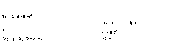 Since there was no normal distribution, the Wilcoxon Signed Ranks Test was used to determine whether the difference between the pre-test and post-test survey mean scores were statistically significant or not. A Wilcoxon Signed Ranks Test revealed that the mean scores of the post-test survey were significantly higher after the implementation of the project (M=4.51, n=58) compared to before (M=4.31, n=58), z = -4.468, p= 0.000, with a large effect size, r= 0.59. More than 0.50 effect size is considered a large effect size (Cohen, 1988).