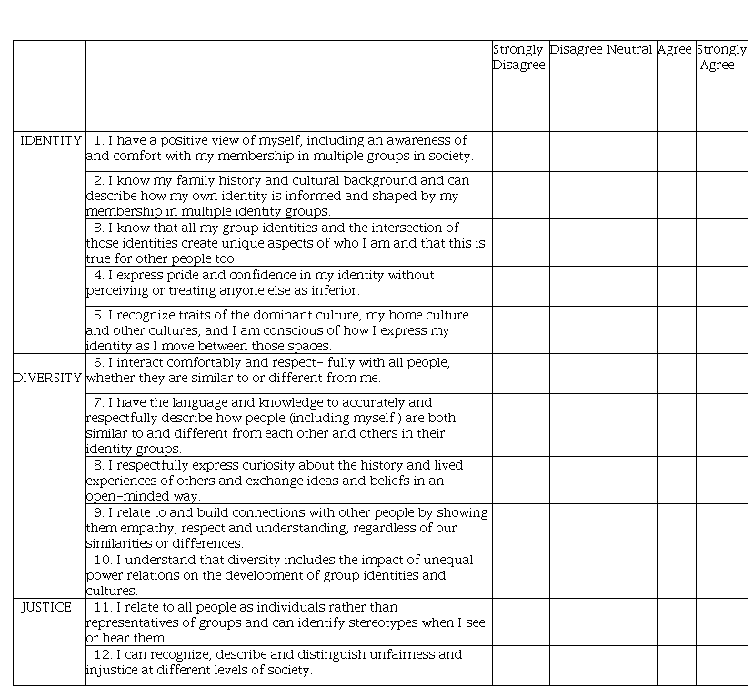 Social justice standards, which were claimed to “provide a road map for anti-bias education at every grade level” (https://www.learningforjustice.org/frameworks), composed of 20 statements. There were four factors in the survey: identity, diversity, justice, and action. First, the founders of the “learning for justice” community were contacted and required permission was granted. Then, these statements were used as the survey items in a 5 Scale Likert Type format and administered as the pre-test survey before the project and as the post-test survey after the project (Appendix B). As mentioned before, 58 participants responded to both surveys on a voluntary basis. As a result of the reliability analysis, the Cronbach’s Alpha was calculated as 0.859 which means that the reliability of the survey was rated as excellent.