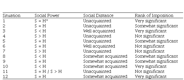 Blum-Kulka, S., & Olshtain, E. (1984). Requests and apologies: A cross-cultural study of speech act realization patterns (CCSARP). Applied linguistics, 5(3), 196-213.