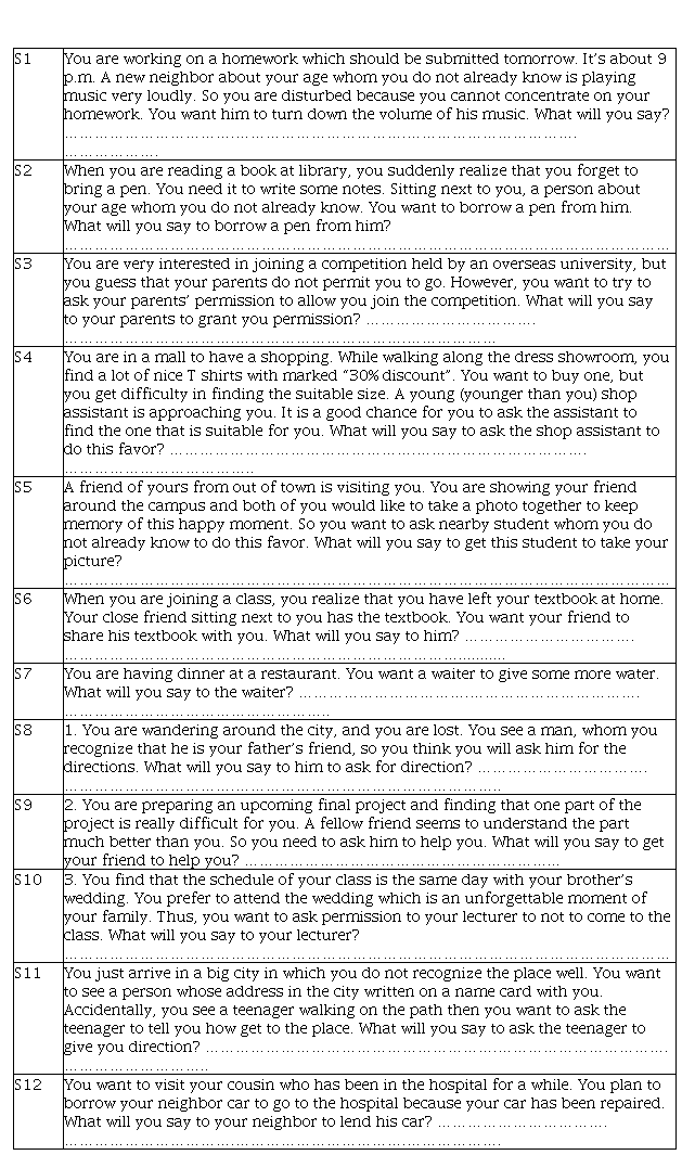 Speech Acts of Requests: Discourse Completion Task (DCT) Questionnaire