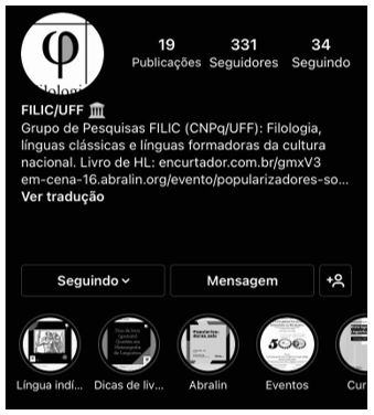 A “popularização da linguística” pode valer-se das novas mídias, como redes sociais, para a difusão e circulação do pensamento, formando novas comunidades virtuais e possibilitando a democratização do conhecimento. Isso permite, por exemplo, um diálogo com uma comunidade mais ampla do que os círculos acadêmicos tradicionais. Nosso grupo de pesquisas decidiu criar perfis em redes sociais diversas, com o objetivo de popularizar o tema da Gramaticografia. Especificamente, nos deteremos na página do Instagram do grupo, que foi o tema de debate no evento recente da Abralin.