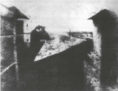 Le cliché considéré comme la première photographie conservée au monde date des années 1826-1827. Il a été pris par Joseph Nicéphore Niépce et montre ce que Niépce voit depuis la fenêtre de son bureau, dans le village des Gras, en Ardèche. Le temps d'exposition était de huit heures, et l'image est le résultat d'innombrables tentatives ratées courant sur une période expérimentale d'environ dix ans. Contrairement à Niépce et Daguerre, qui travaillaient avec des plaques de cuivre argentées comme matériau de support, Hippolyte Bayard et, en Angleterre, Henry Fox Talbot, expérimentaient au même moment avec un procédé positif-négatif et du papier. Les premières réussites de Talbot - lequel eut apparemment l'idée de son invention en 1822 lors d'un voyage en Italie, désirant, comme on l'a vu plus haut, enregistrer ce qu'il avait vu (Zannier 1987: 24) - sont aussi des vues prises depuis une fenêtre. Et Daguerre a également pris nombre de ses premières photographies depuis la fenêtre de sa maison de la rue du Marais.